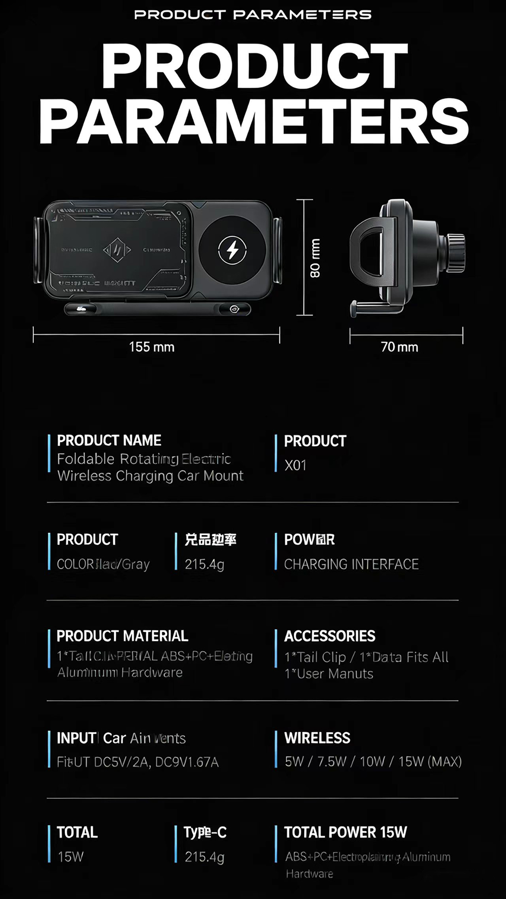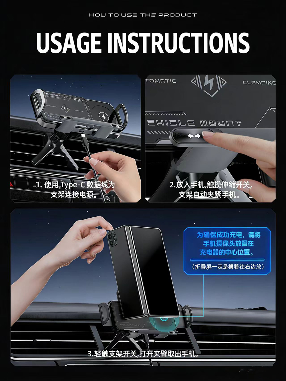 Automatic Rotation Wireless Charging Car Mount for Foldable and Non-Foldable Screen Phones