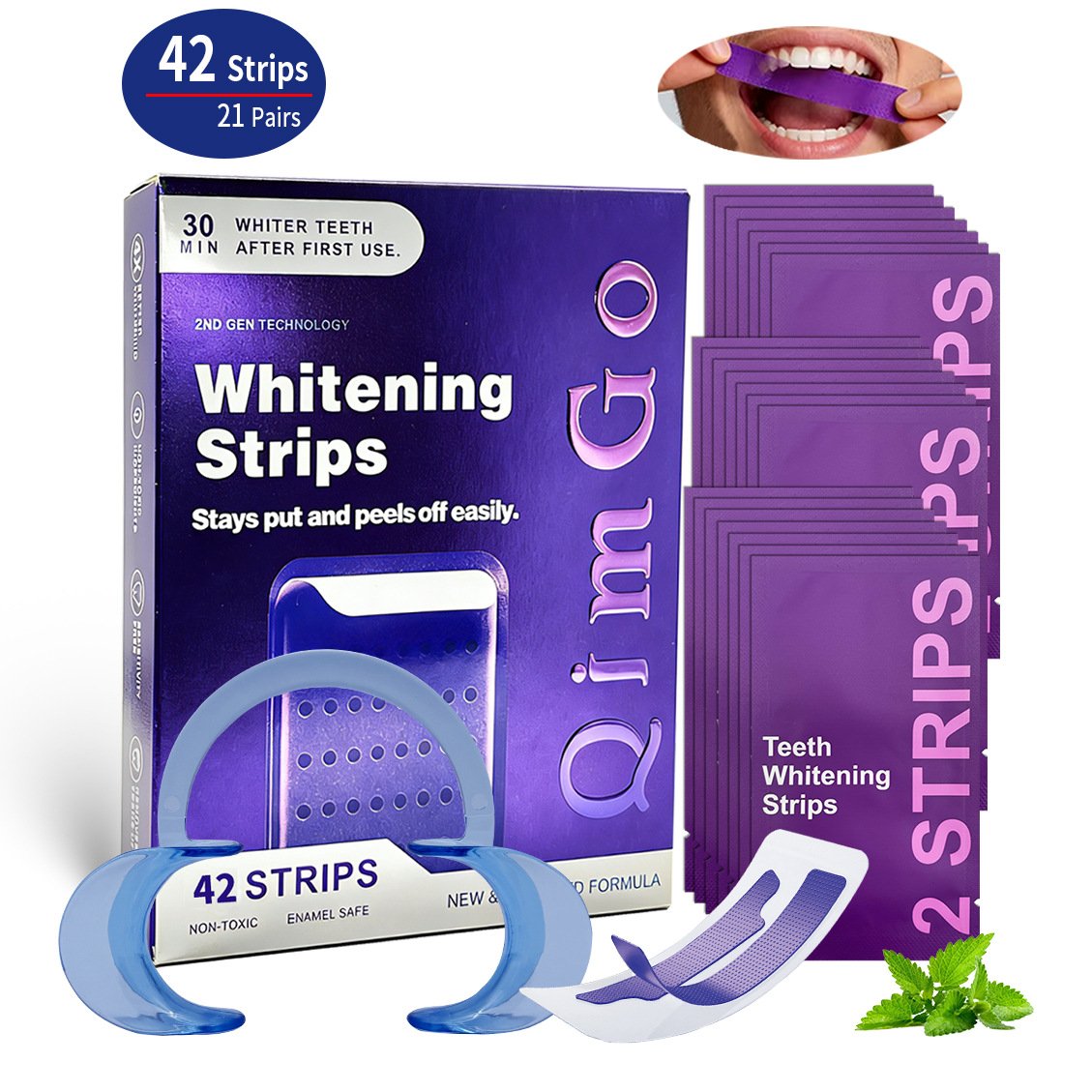 QimGo Advanced Purple Teeth Whitening Strips – Elevate Your Smile, Effortlessly
